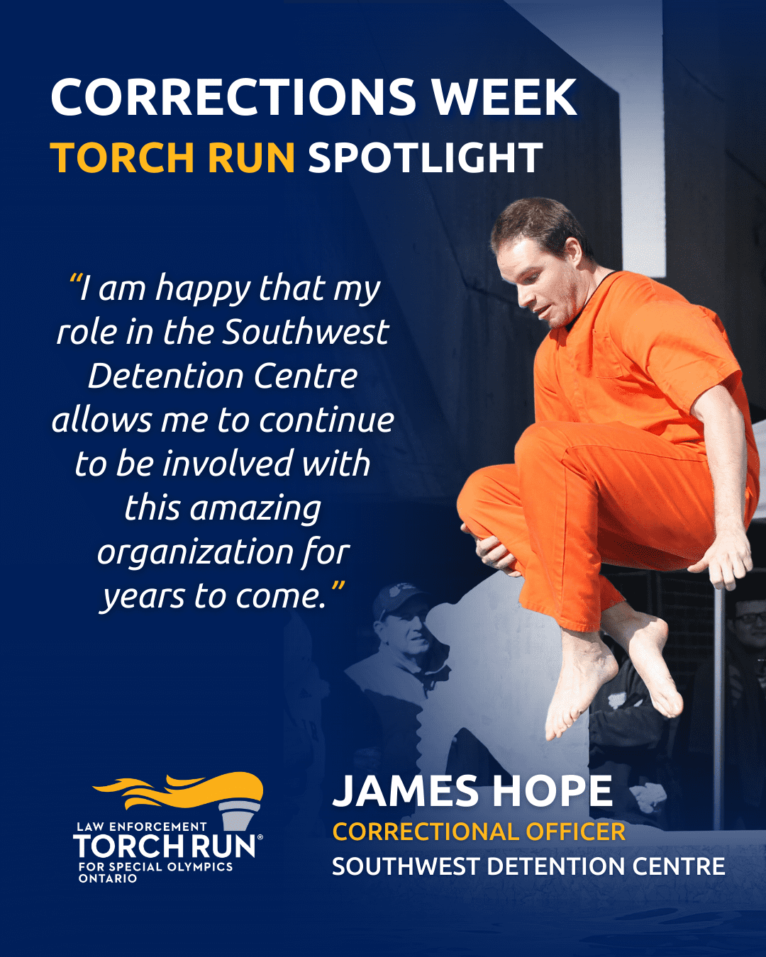 James Hope started as a Correctional Officer at the Southwest Detention Centre two years ago, but his involvement with Special Olympics actually started in 2010. Volunteering with LaSalle-Windsor Special Olympics for 10 years, James worked directly with athletes as a coach for various basketball, floor hockey, and track and field teams.